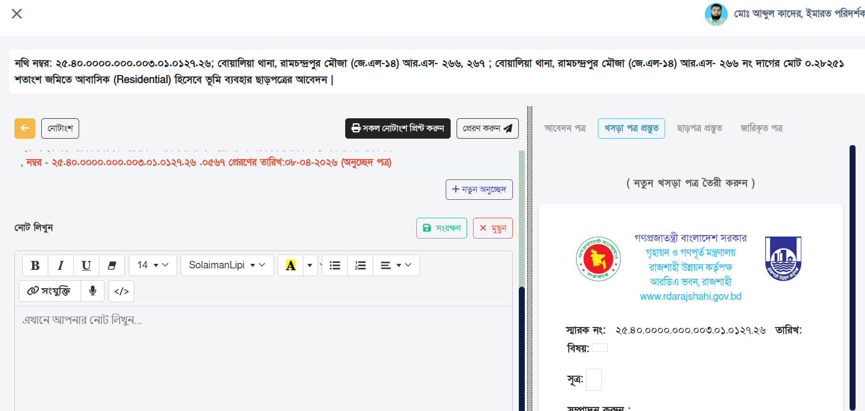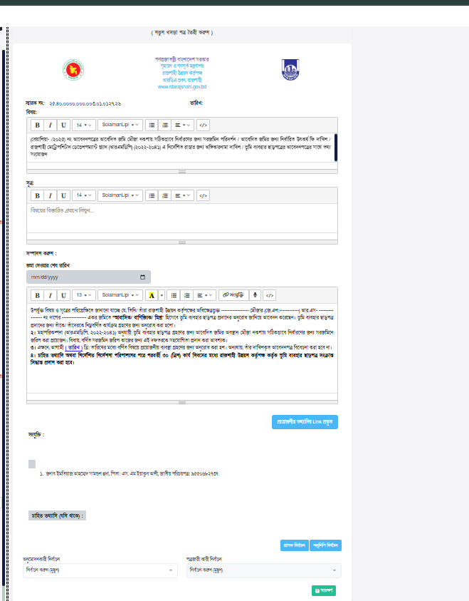 - Generate official letters after application in nothi uposthapon