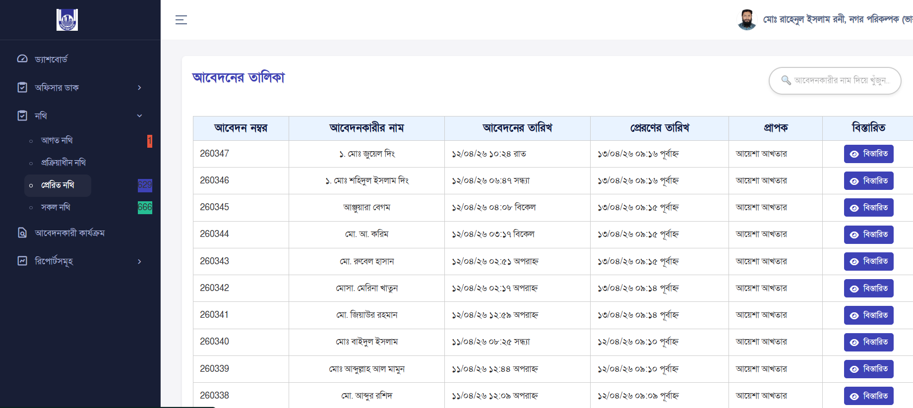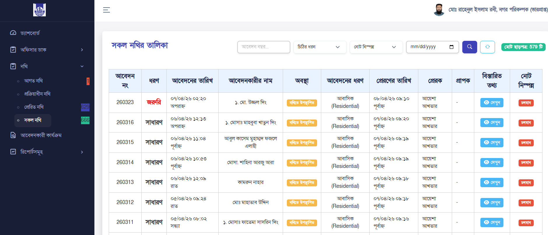 - This section represents files that are officially entered into the Nothi note and letter management(file processing system)